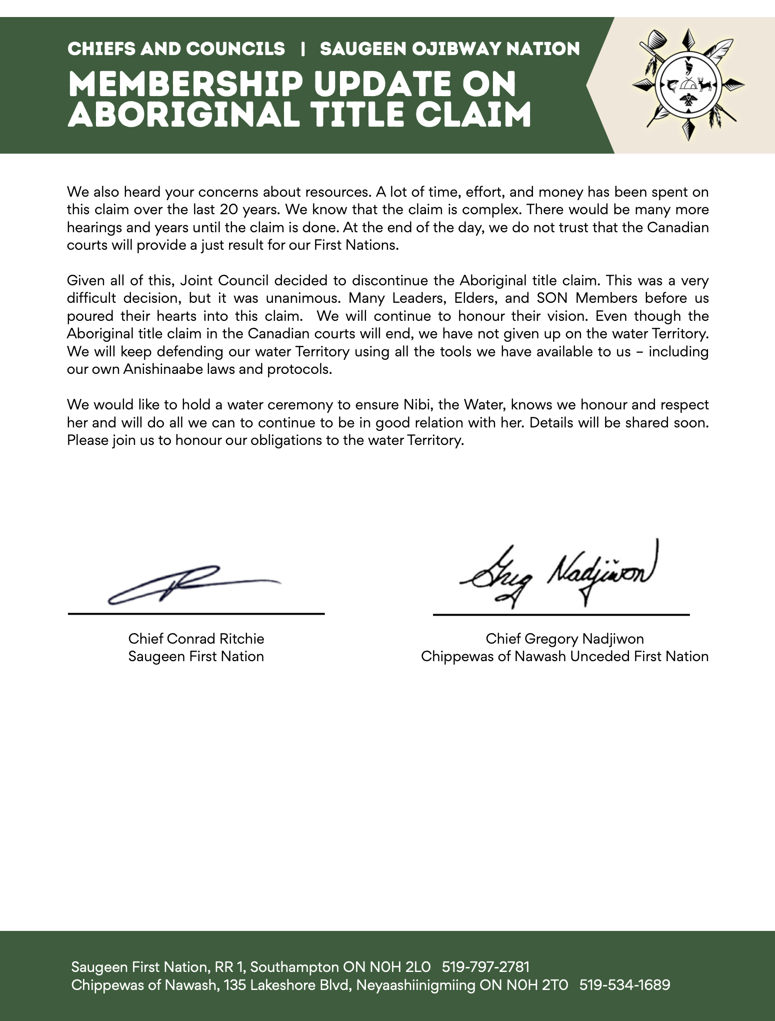 Saugeen First Nation | Phone: 519-797-2781 | Address: 6 Cameron Drive, Southampton, ON N0H 2L0